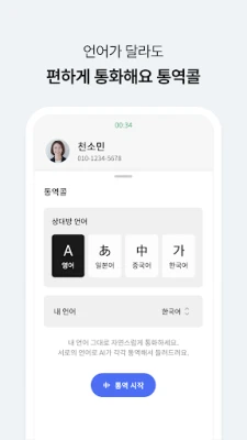통화 중 외국어를 실시간으로 동시 통역해줍니다. 통화 참여자가 말한 내용이 상대방 언어로 번역되어 표시됩니다. 해당 기능은 국내에서만 제공됩니다.