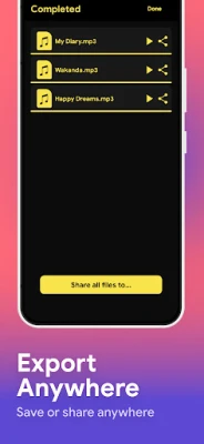 Once you have converted your audio files, you can easily share them with your friends or post them on social media. Our app makes it easy to share and upload your audio files, allowing you to showcase your favorite music or audio clips.