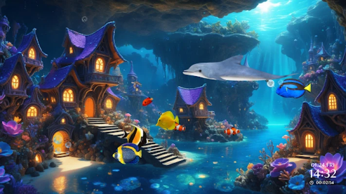 Experience the beauty and tranquility of an aquarium right in your living room with our mobile app. Immerse yourself in a vibrant underwater world filled with colorful tropical fish and stunning landscapes.
