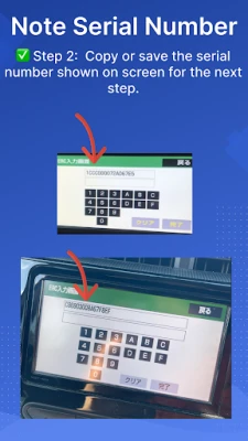 Finding your ERC Serial Number is quick and easy with ERC Car Audio/NAVI Unlocker β±οΈ. Simply press and hold the main button π on your navigation player while toggling your parking lights π¦ a few times. A new screen will appear displaying your 18-digit serial number π’. Retrieve the serial number by pressing the active button on the screen. For detailed instructions, visit our help section in the app or on support website: π www.ercunlocker.com/guide.html.