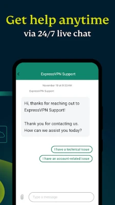 Get help anytime with ExpressVPN's expert support team via live chat or email.