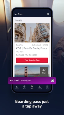 With the Fly Delta mobile app, planning your next trip has never been easier. Whether you're traveling domestically or internationally, our app allows you to shop and book flights, track and pay for upgrades using your SkyMiles®, and manage your travel preferences and payment methods all in one place.