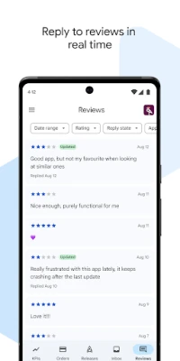 With our app, you can easily handle orders and refunds, stay on top of reviews, and track your app's availability all in one place. This means less stress and more time to focus on growing your app and engaging with your users.