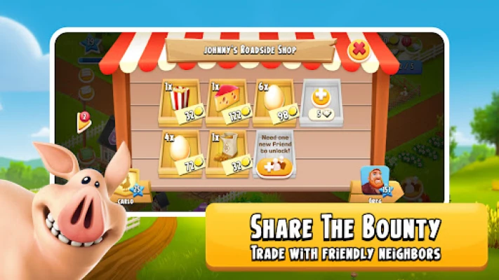 PLEASE NOTE! Hay Day is free to download and install. However, some game items can also be purchased for real money. If you do not want to use this feature, please set up password protection for purchases in the settings of your Google Play Store app. A network connection is also required.