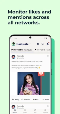 Are you tired of constantly switching between different social media apps to manage your accounts? Look no further than Hootsuite! Our all-in-one app allows you to create, schedule, and publish posts, monitor activity and mentions, and manage comments and messages all in one place. Say goodbye to the hassle of juggling multiple apps and hello to a more efficient social media management experience.