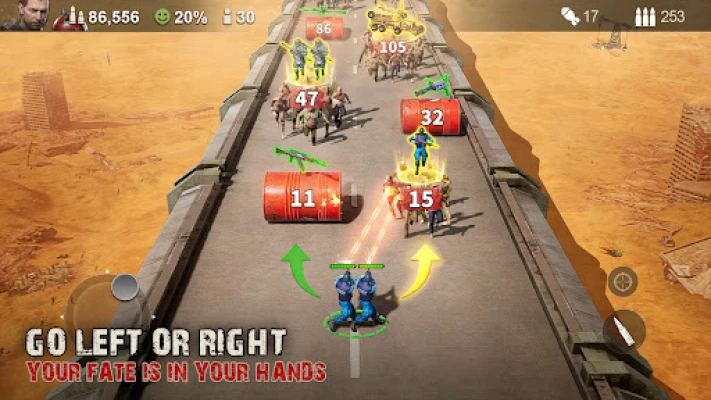 In this world of chaos, one set of units is not enough to conquer. You must use a combination of Warriors, Shooters, and Vehicles to defeat your enemies. Know your strengths and weaknesses, and use strategic gameplay to emerge victorious in this World War Z-style wasteland.