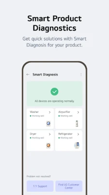 Get all the support you need in one place with LG ThinQ. From troubleshooting to service requests, you can handle everything directly from the app. Use the Smart Diagnosis function to check your product's status and book a service visit from a professional engineer for an accurate diagnosis and inspection.