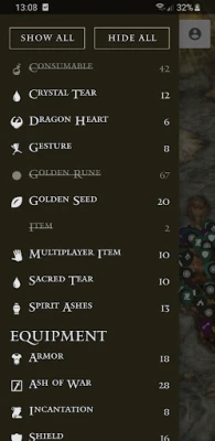 • 70+ categories - including Dungeon Bosses, Ashes of War, Talismans, Golden Seeds, Teardrop Scarabs & more!