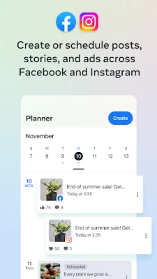 With our mobile app, you can easily manage your Facebook Page and Instagram account all in one place. No more switching between apps or devices, everything you need is right at your fingertips.