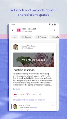 With Teams, you can easily share photos and videos in chats to keep everyone in the loop. Access shared documents and files on the go with cloud storage. And with the ability to organize shared content in a community, you'll never waste time searching for important information. Plus, features like screenshare, whiteboard, and virtual rooms make meetings more productive.