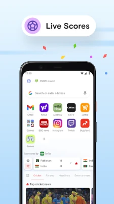For all the cricket fans out there, Opera Mini has you covered. Our dedicated Live Scores section ensures lightning-fast access to cricket match results, so you never have to miss a game.