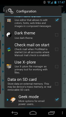 Our app offers both automatic and manual options for checking your mail. You can choose how much, what, and when to download, and how you want to be notified about it.