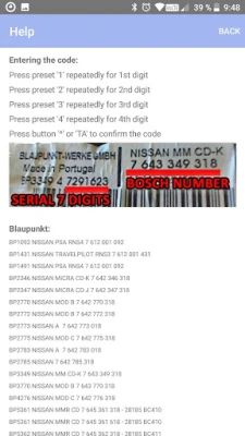 Calc for CODE radios NISSAN MICRA NOTE - BLAUPUNKT.
