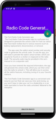 Don't let a locked radio ruin your driving experience. Download the Ford Radio Code Generator app today and unlock your radio in seconds. It's a convenient, easy-to-use, and cost-effective solution for anyone who has experienced a locked radio due to a power outage or battery change.