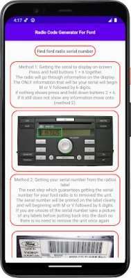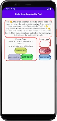 The app uses the radio's serial number and security code to generate the unlock code. You can easily find the serial number on a sticker or engraved on the radio itself. The security code may be provided in the car's manual or on a separate card. Simply enter this information into the app, and it will generate the unlock code for you.