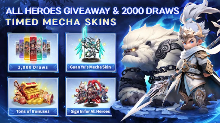 Start off strong with 2,000 draws and 100% custom S+ heroes. Don't forget to grab limited weapons, beasts, skins, and gold to give your team an extra edge in battle.