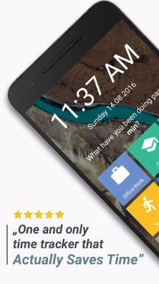 With Save My Time, you can say goodbye to the hassle of setting up a time-tracker and manually tracking your time. Our app takes advantage of the average human's habit of checking their phone every 8 minutes, by replacing your standard lock screen and prompting you to log your recent activities.