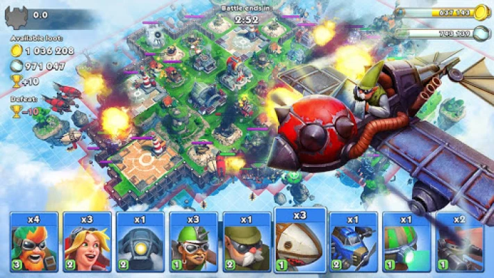 Join the epic journey into a unique steampunk world where you will discover an incredible world of epic combat. Develop your little base into an unbeatable fort and create your own clan to lead to global glory. With Sky Clash, you can take part in PvP battles and epic 4x4 clan wars, as well as withstand the robot invasion and upgrade your defense, weapons, and airship to win air battles.