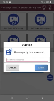 Not satisfied with the preloaded settings? No problem. Our app also allows you to define your own custom time duration and settings for splitting your videos. You can then share them on any chat message app or social media website, including WhatsApp, Snapchat, Twitter, Facebook, and Instagram.