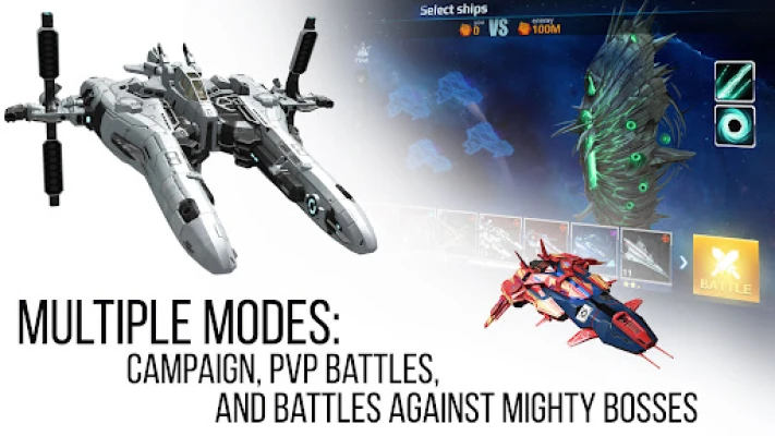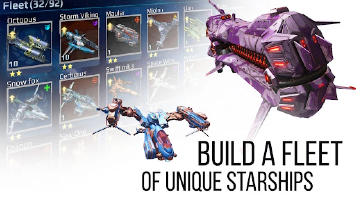 Take control of a powerful fleet of over fifty unique starships and upgrade them with blueprints, rare modules, and loot from battles. Choose your ship wisely for each mission.