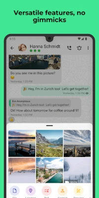 Threema is not just a secure messenger - it's also packed with versatile and useful features. You can send text and voice messages, make voice and video calls, share videos, pictures, and locations, and even send any type of file. Plus, with the desktop app and web client, you can seamlessly chat from your computer. Threema also offers the ability to create groups, conduct polls, and choose between a dark or light theme for a personalized experience.