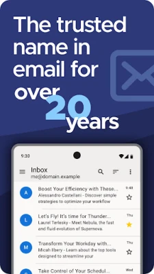 Thunderbird has been a trusted name in email for over 20 years, and now it's available on Android. Our app is fully funded by voluntary contributions from our users, so you'll never have to worry about your personal data being mined. Our team is dedicated to creating an efficient and user-friendly experience, so you can spend less time using the app and more time getting things done.