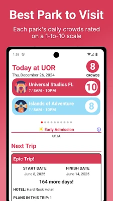 -New “Ride Now” and “Wait to Ride” recommendations to show whether waits are going up or down at your favorite rides.