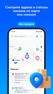 Для курьеров: • Смотрите адреса и статусы заказов на карте или списком; • Проверяйте общую информацию и состав заказов; • Отслеживайте график выхода на рейс и гибко управляйте временем.
