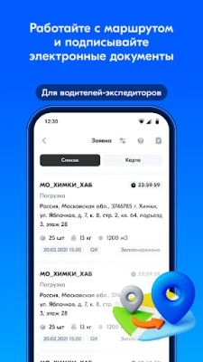 Для водителей-экспедиторов: • Работайте с маршрутом и подписывайте электронные документы. Для транспортных компаний: • Участвуйте в торгах — делайте ставки и проверяйте новые лоты; • Управляйте заявками и передавайте рейсы водителям.