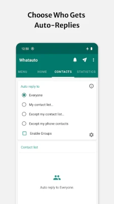 At Whatauto, we believe in giving you control over your messages. That's why we allow you to select specific contacts to send auto replies to. No more worrying about sending the wrong message to the wrong person.