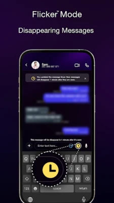 For added security, you can enable Flicker™ mode on a per-chat basis. This feature automatically deletes messages from both the sender and receiver devices after a set amount of time. You choose how long the message stays visible, giving you control over your privacy.
