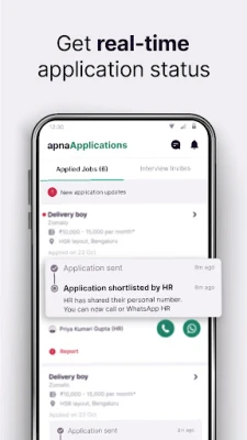 ✨ Personalized job alerts: Stay updated with real-time notifications for roles that meet your skills and job expectations. You can create alerts for jobs that meet your desired criteria and apna will send you a notification every time a new opening that meets those criteria is added to the platform.