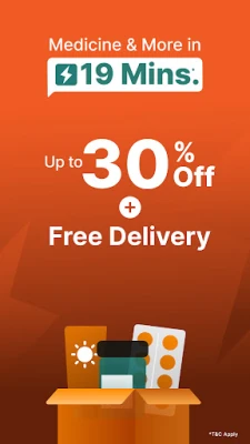19-minute* medicine delivery across Delhi, Noida, Gurugram, Hyderabad, Bangalore, and Kolkata