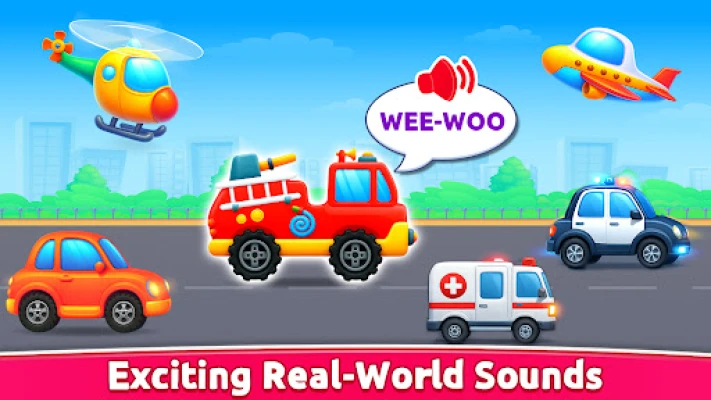 Discover realistic sounds of cars, buses, and trains in this engaging baby phone game! Tap and hear honks, beeps, and vrooms - perfect for sensory play.