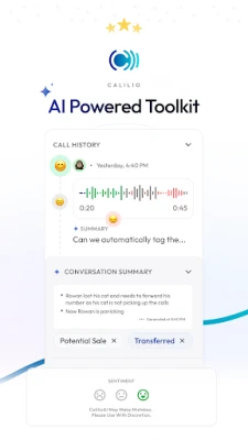 Calilio’s services laced with Artificial Intelligence take call management to the next level. It offers AI-powered sentiment analysis, report generation, and call summaries to help businesses gain actionable insights from every interaction. This makes it an ideal choice for call centers, sales teams, and customer support operations.