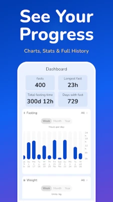 • Charts & Insights: See your fasting for weight loss journey with beautiful graphs.