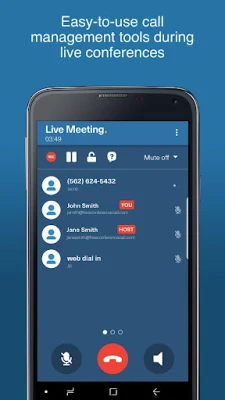 Select your conferencing line from your list of meetings and tap the Host Meeting Now icon to host or join a conference call