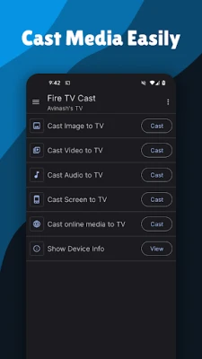 This app allows you to cast your images, audios and videos to the connected Fire TV device. This app pairs with the tv and casts media files selected by the user to it.