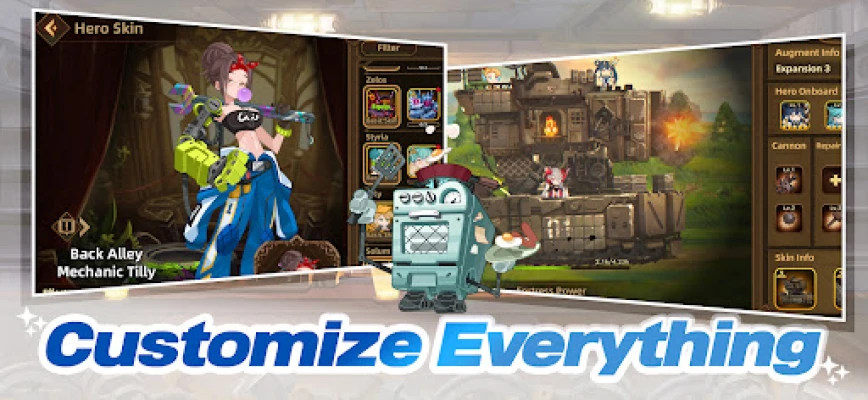 Build your own team of dealers, tanks, and support heroes. Collect, upgrade, and combine warriors to unlock powerful synergies in this hero collection RPG. Customize and upgrade your fortress with rare gear and enhancements to match your battle strategy and playstyle.