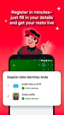 All of these services are completely free! If you own a business and want to join as a Gojek partner, simply download the GoFood Merchant app and register your business independently. All you need is your ID card (KTP), active phone number, and email address.