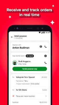 Stay on top of your restaurant's performance with the GoFood Merchant app. View transaction history and sales reports by period, monitor your restaurant's performance, and check your rating and customer reviews directly in the app.