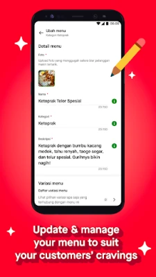 Say goodbye to the hassle of manually updating your menu. With the GoFood Merchant app, you can easily add, update, or remove menu items from your GoFood list. You can even offer menu variations to cater to customer preferences, all through the app.