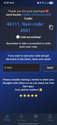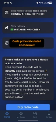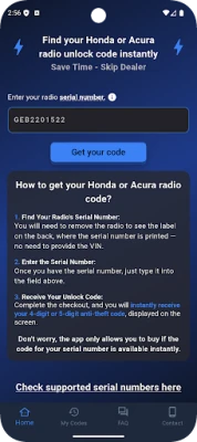 Don't wait any longer to unlock your Honda radio. Download our app now and get your code instantly on your screen after payment. Our app is user-friendly, mobile-friendly, and available 24/7. Say goodbye to dealership visits and high fees. Unlock your Honda radio with ease using our app. Get it now!