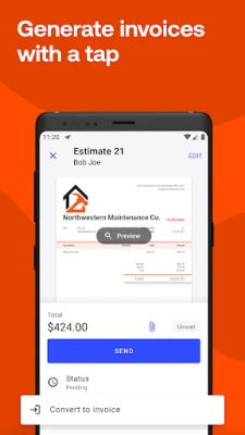 Make business invoices and estimates on the go to get paid faster using one simple app. Send billing receipts and accept online payments from credit cards, PayPal, & Google Pay on all invoices. Billing your clients has never been easier!