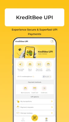 With KreditBee's UPI integration, you can enjoy faster, reliable, and secure payments. Simply link your bank account with your registered mobile number and start using UPI for online and offline transactions. Send and receive money instantly with KreditBee UPI, approved by NPCI.