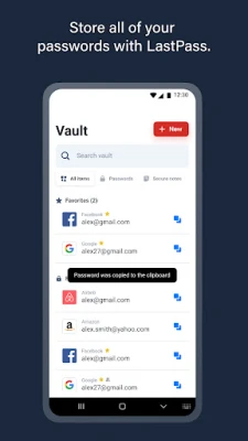 • Store usernames and passwords for all your online accounts securely in your LastPass encrypted vault.