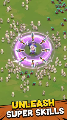 Auto-targeting knives circle your hero, shredding through monster waves.