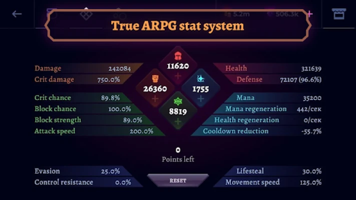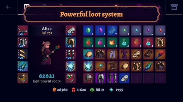 There are lots of possibilities to make your character stronger. There are 8 types and 7 rarities of equipment. You can make slots in your armor and place gems in there, also you can combine several gems of one type to get an updraded one. The smith in the town will gladly enchance and reforge your armor that will make it even better.
