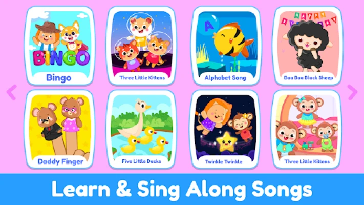 Nursery rhymes for kids interact with the characters onscreen as they learn, play & sing along. Kids & little baby will have fun interacting & touching the animals to hear the sounds. Favourite Nursery rhymes for kids & nursery songs that are included in this free apps for kids - Twinkle Twinkle little Star, Old McDonald Had a farm, Mary had a little lamb, Row Row Row your boat, Tisket Tasket, Skip to my Lou, wheels on the Bus, Alphabet Song