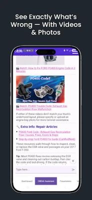• Mechanic-grade answers to questions like "Is this safe to drive?" or "What part do I need?"